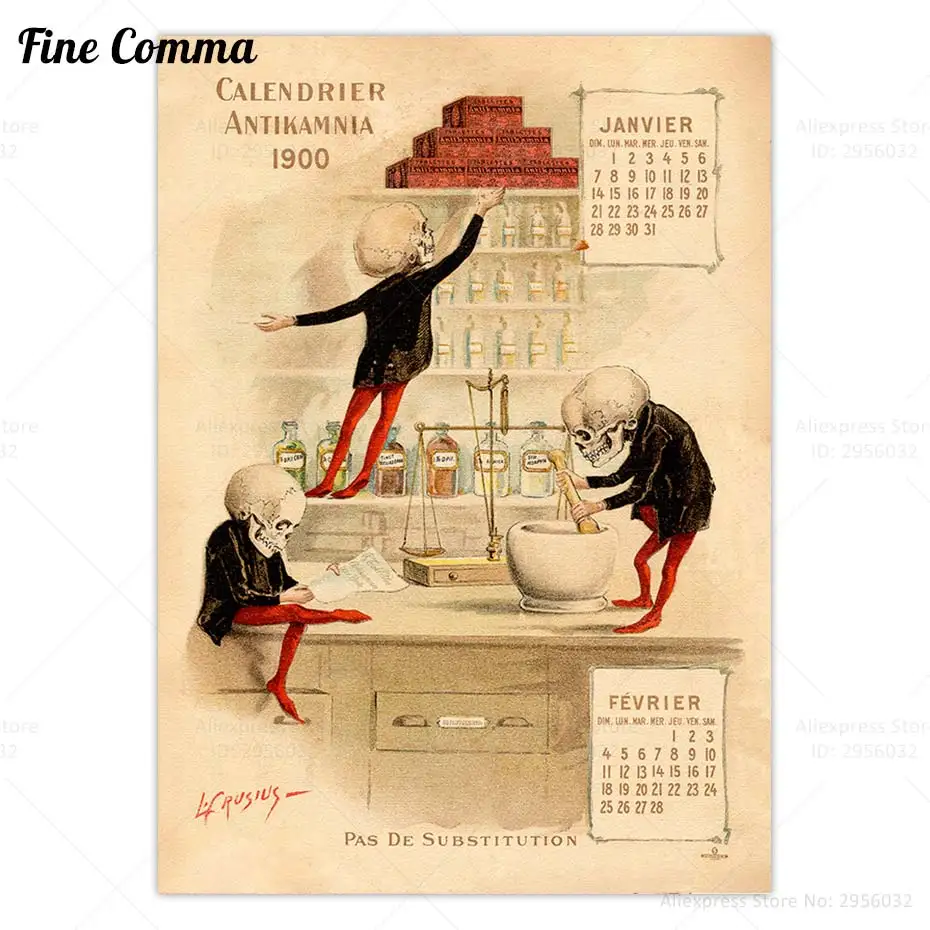 Винтажный постер антикамния календарь античный медицинский Черепа скелета иллюстрация настенное искусство холст с забавной костью декор стен