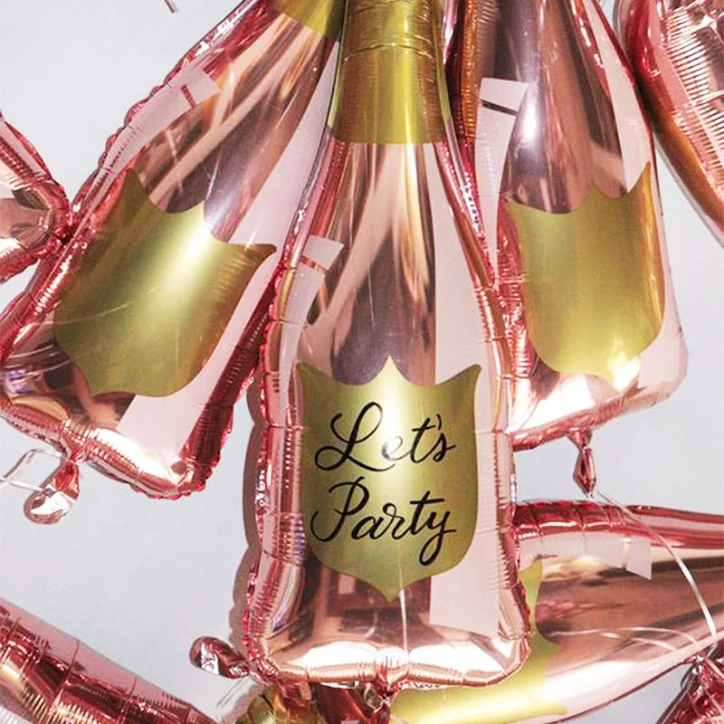 1 шт., розовое золото, бутылка шампанского, вина, майларовые шары, ...