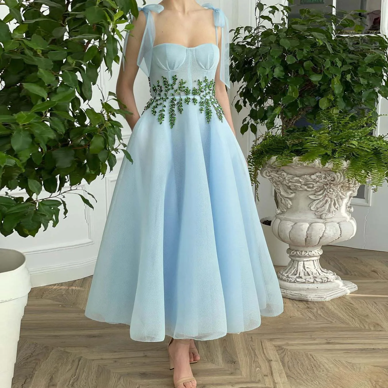 Светильник-голубое элегантное женское ТРАПЕЦИЕВИДНОЕ платье без рукавов с бисером длиной для особых случаев платье для выпускного вечера платья для подровечерние