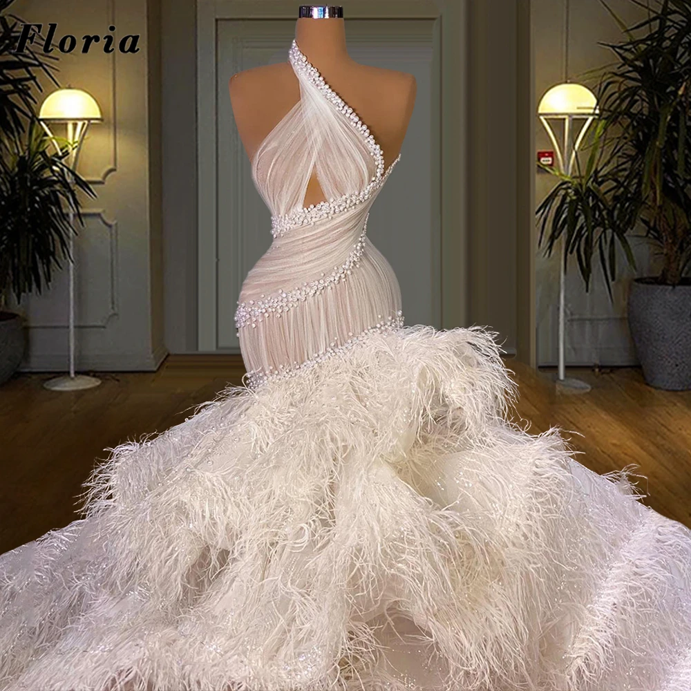 Новинка, пышная ярусная свадебная одежда из Дубая с оборками и перьями, свадебное платье для мусульман, 2021