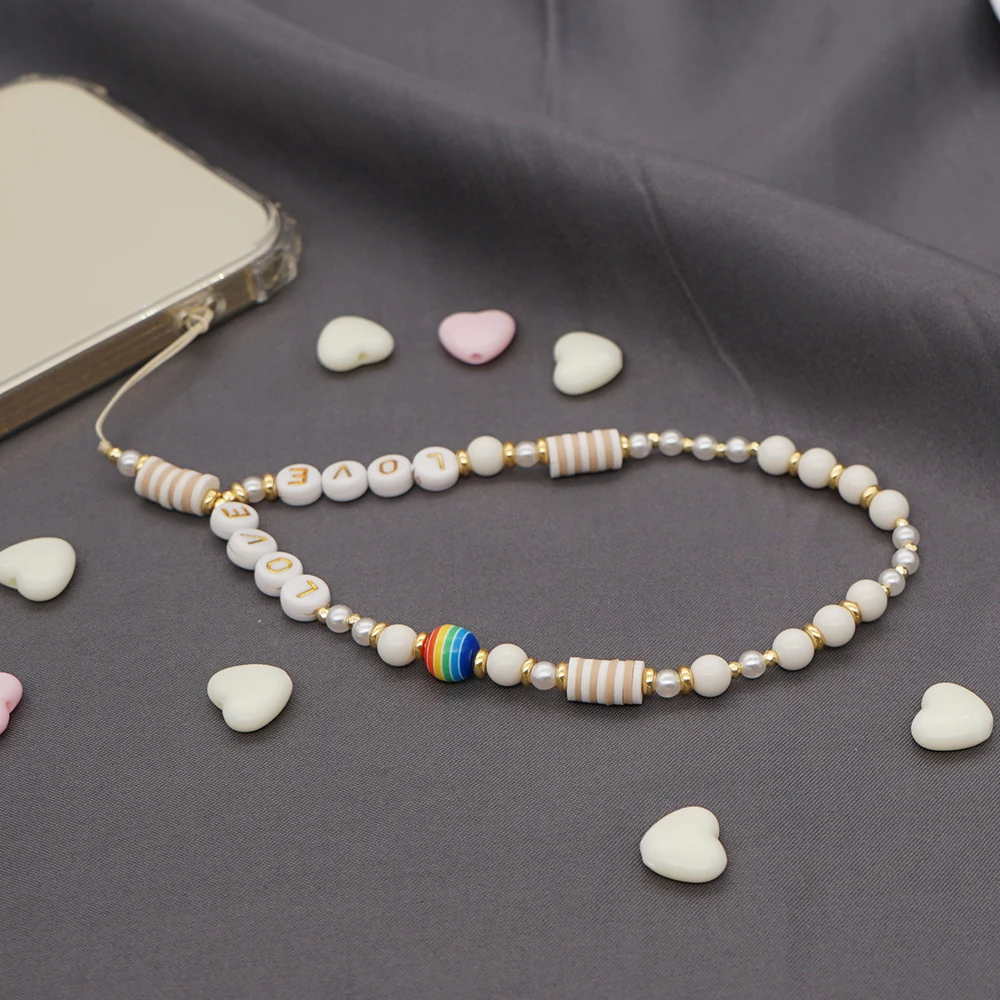 Женский браслет Go2Boho с бусинами для мобильного телефона, белая цепочка для телефона с надписью LOVE, 2021, анти-потерянный шнурок