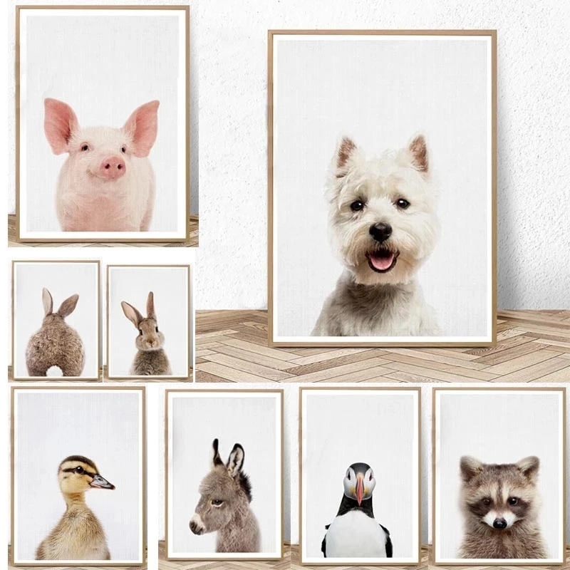 Современное настенное искусство на ферме, милые животные, картины из альпака, кролик, холст, картина, Постер в скандинавском стиле, домашний декор для детской комнаты