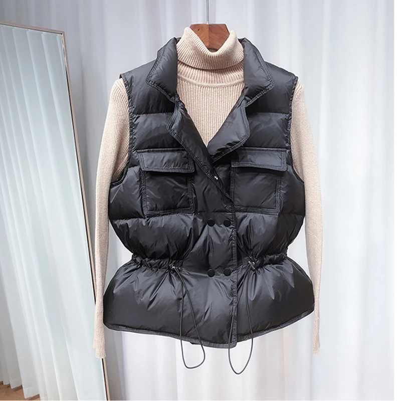 Зимний пуховой жилет, женский короткий жилет, ветровка, легкое пальто, теплый жилет, Женское пальто на белом утином пуху, куртка без рукавов