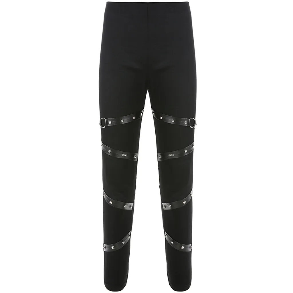 Женские однотонные готические повседневные свободные эластичные брюки с карманами и заклепками