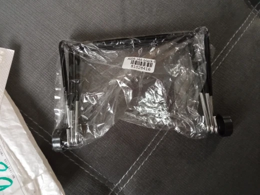Заказал 16 июня , получил в общей посылке 15 июля. Отличная подставка для планшета. Металл очень прочный, нижняя часть покрыта пластиковой не скользящей плёнкой. Заказываю уже третью. После длительного и регулярного использования необходимо заменить пластмассовые вертушки (отслоились от гайки). В остальном идеальная подставка с возможностью выставить любой угол наклона и не ломаемая.