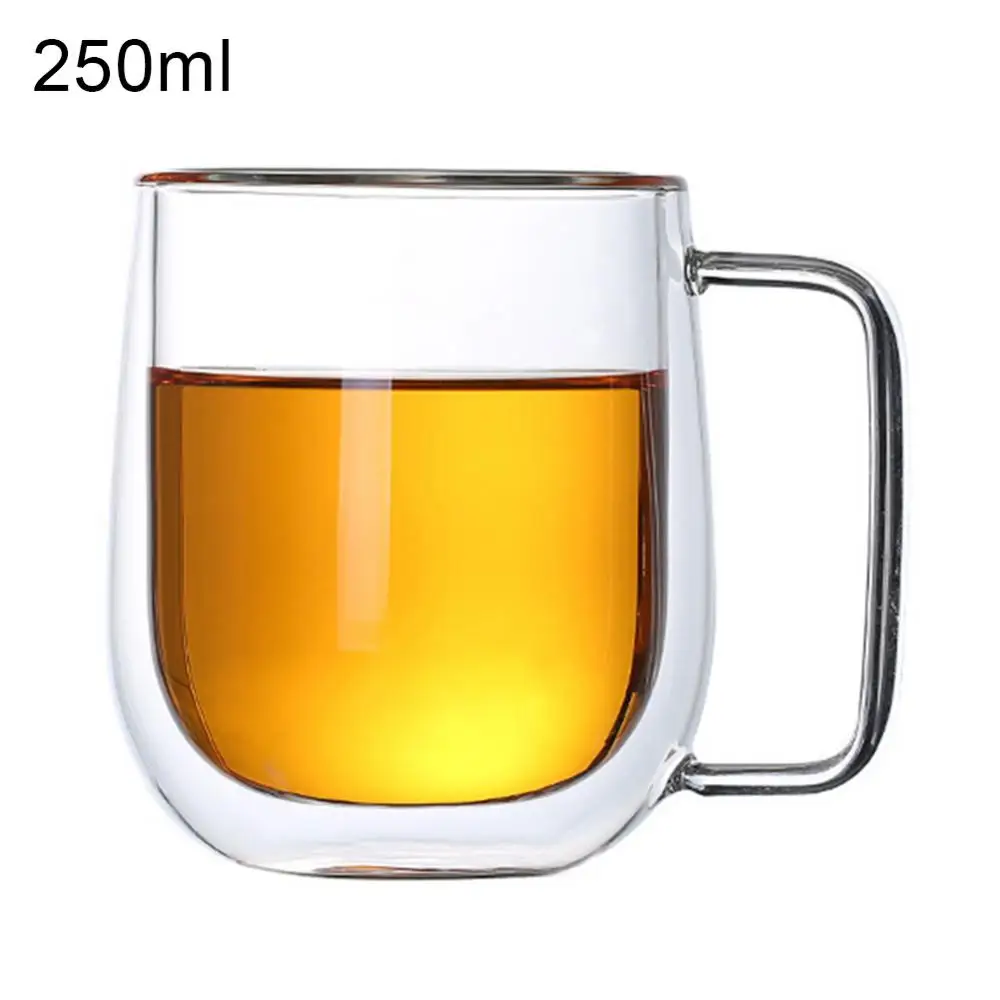 Стеклянная кружка с двойными стенками, прозрачная, 250350 мл, для кофе, чая, воды, изолированная кружка, посуда для напитков, стеклянная кружка с двойными стенками