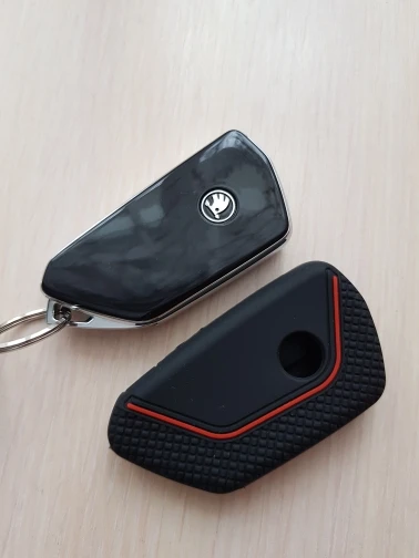 Немного сложно разместить их Внутри чехла, но он идеально подходит для ключа. Черное и красное сочетание выглядит элегантно.