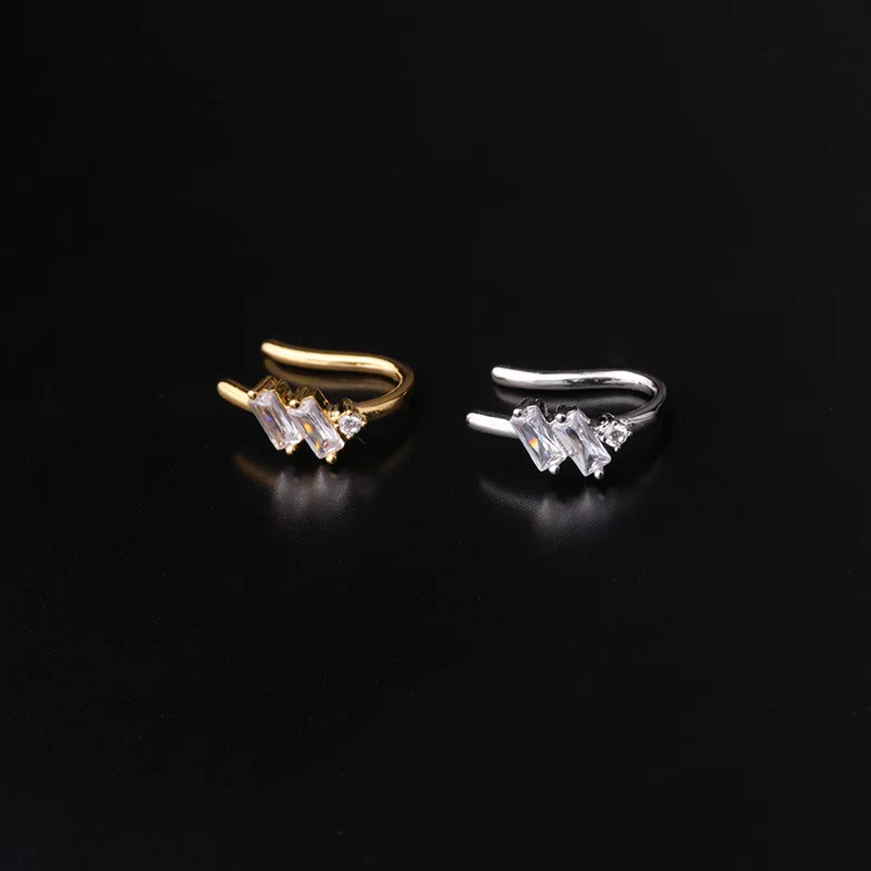 1 шт. геометрические каффы с фианитами для ушей, поддельные ювелирные изделия для пирсинга, регулируемые серьги из нержавеющей стали, каффы без пирсинга, серьги-манжеты в виде ракушек, ювелирные изделия