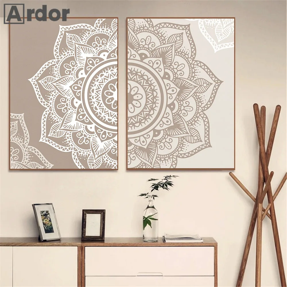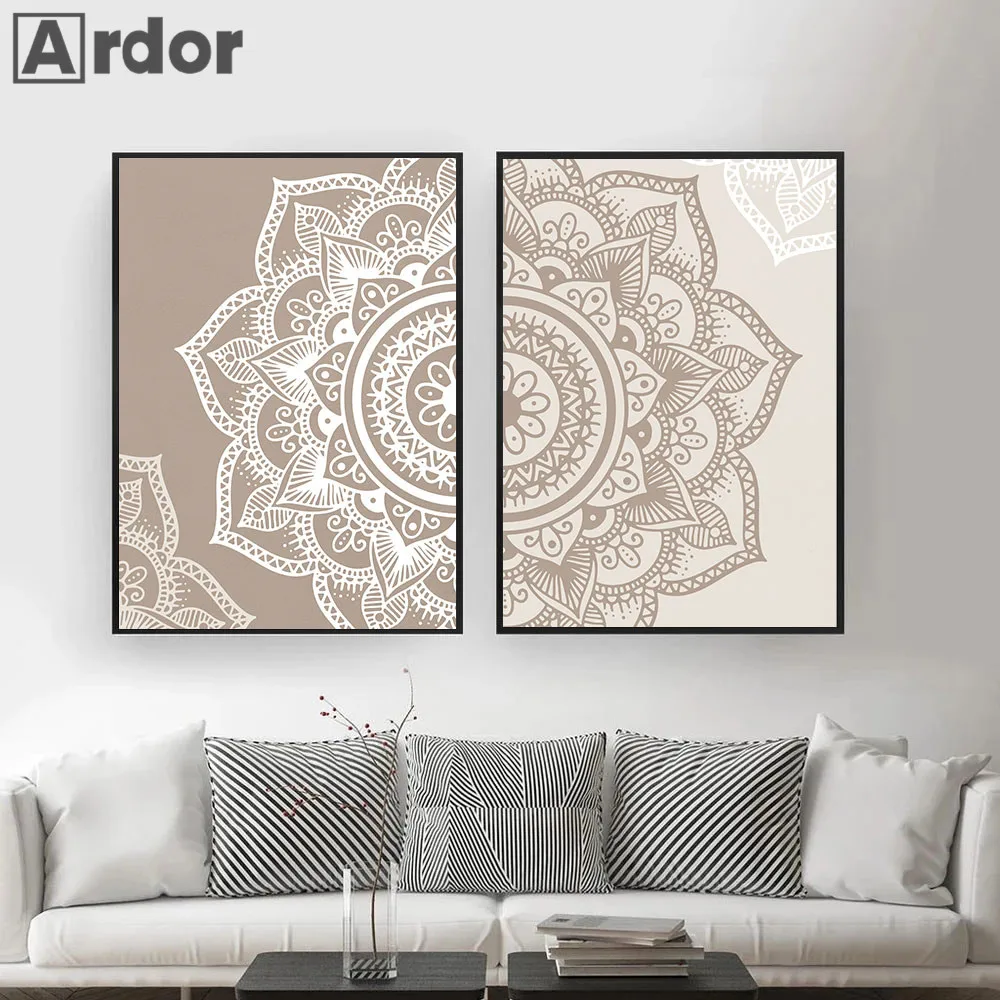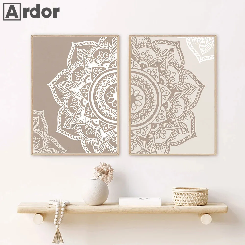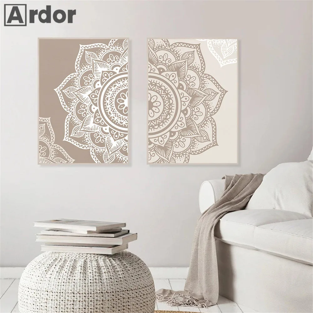 Бежевый богемный Современный исламский принт Мандала Цветочный пост...