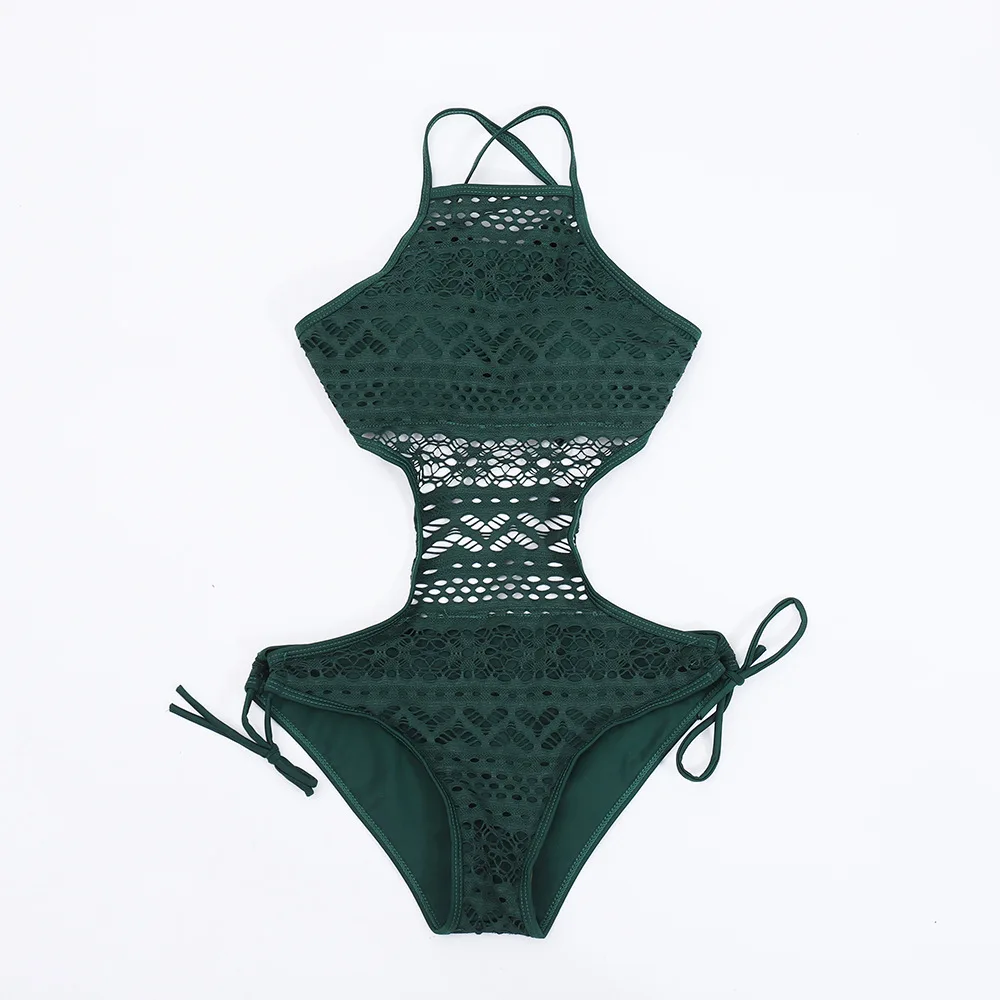 Цельный купальник, женский купальник для похудения, сексуальный Классический купальник, кружевное ажурное бикини, летний однотонный пляжный купальный костюм