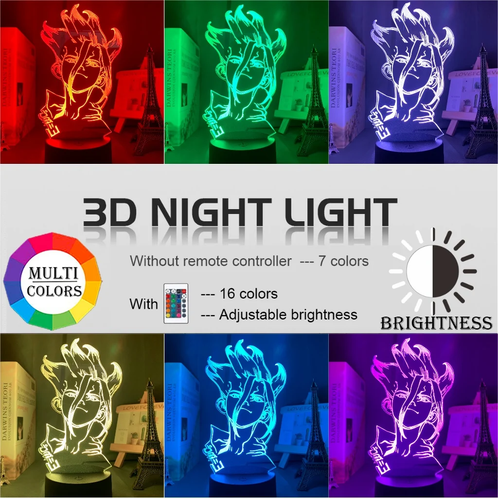3D Аниме Dr каменная фигурка Настольная 3d лампа для детей Детская Спальня Декор ночсветильник Манга подарок для Него акриловый светодиодный ночник лампа