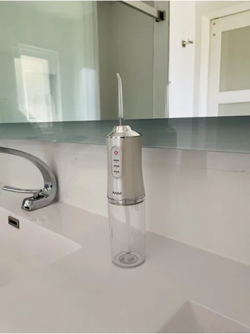 Мы получили наши водяные нити и очень довольны этой покупкой. Мои дети не гладят их зубы, так как часто я бы хотел, чтобы они плавали, и в результате, мы должны совершать визит в стоматологический офис каждый другой месяц. Эта нить обеспечивает плавную головку для каждого члена семьи, поэтому нет больше пластиковых отходов для окружающей среды. Хороший прочный материал и эстетический вид нити абсолютно необходимы в вашей ванной комнате. Я покупаю еще один для семьи моей сестры.
