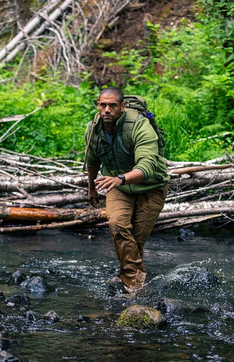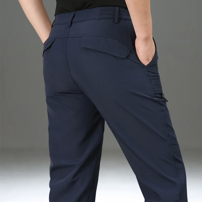 Очень хороший материал, он не полностью водонепроницаемый, но если он немного отталкивает воду, он не должен использоваться, как водонепроницаемый. И размер может варьироваться, например, я заказал брюки xxL, и я Размер 32 штанов, и я остаюсь большим, но это можно исправить с помощью ремня.