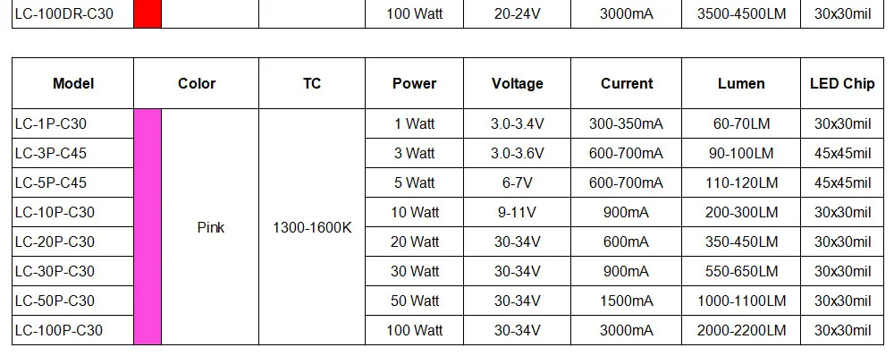 1 Вт, 3 Вт, 5 Вт, 10 Вт, 20 Вт, 30 Вт, 50 Вт, 100 Вт, светодиодная ...