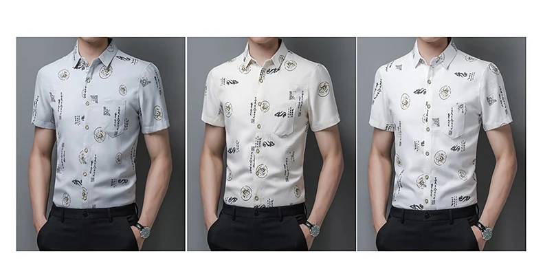 Рубашка мужская с коротким рукавом, модная повседневная с принтом, ...