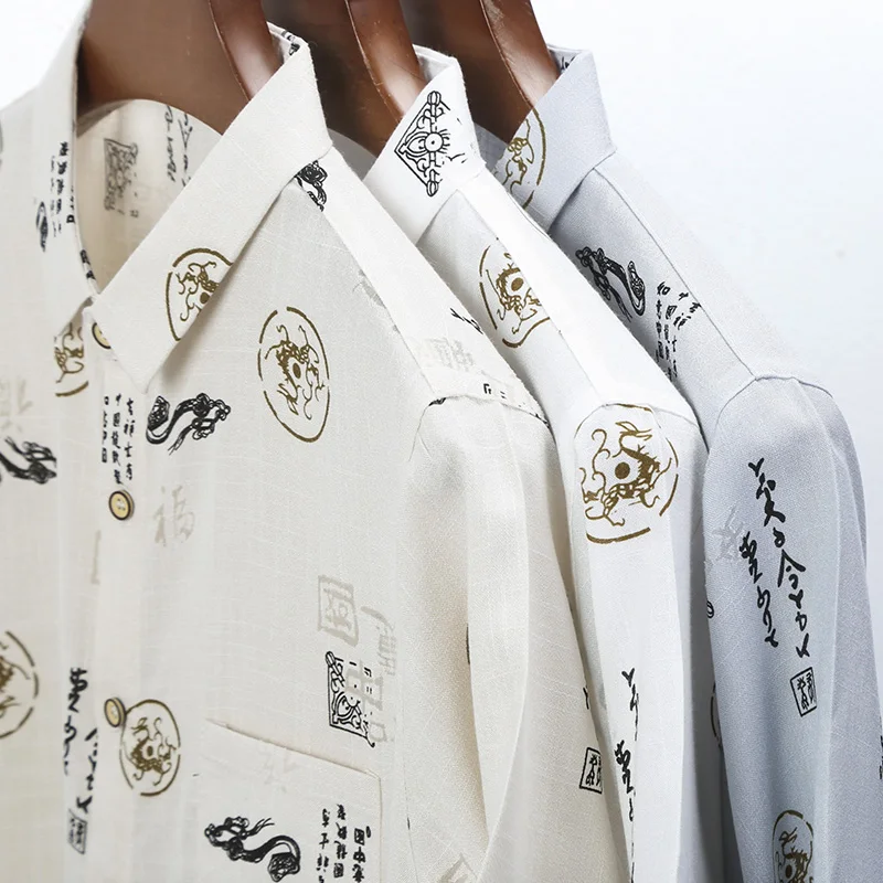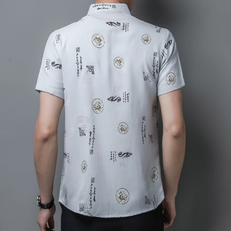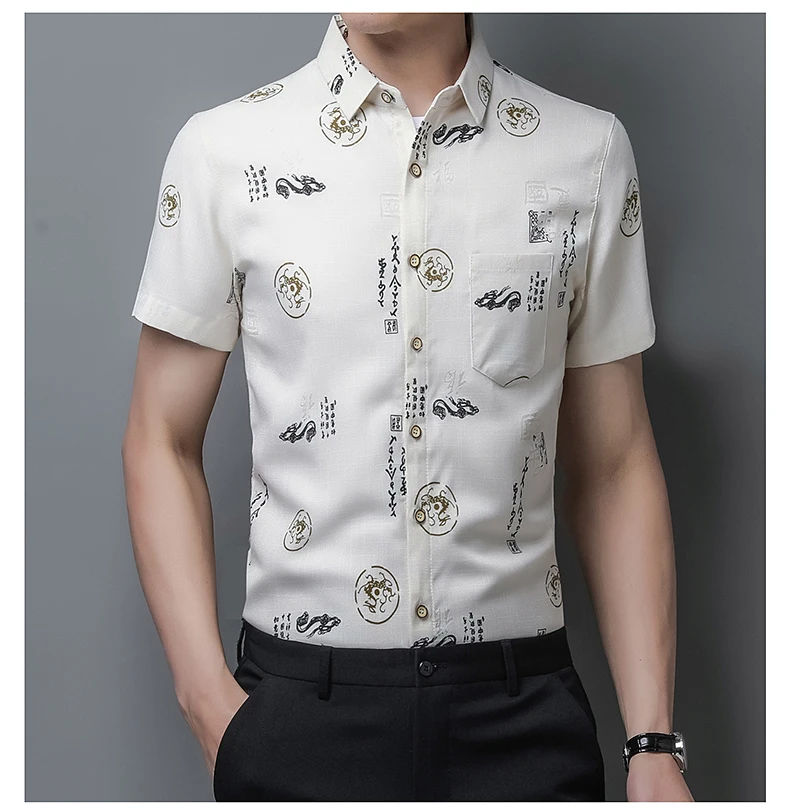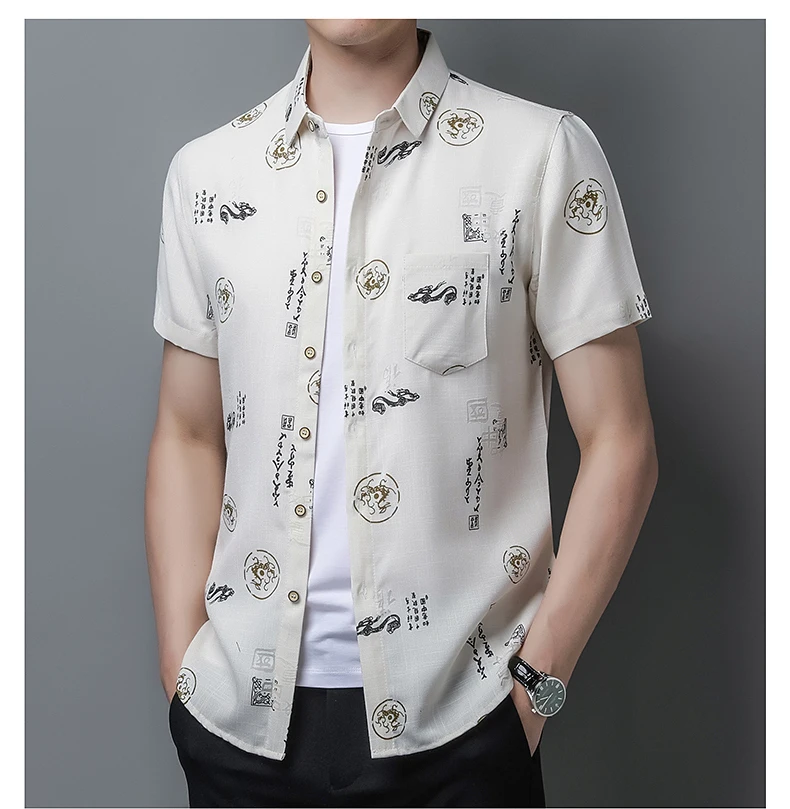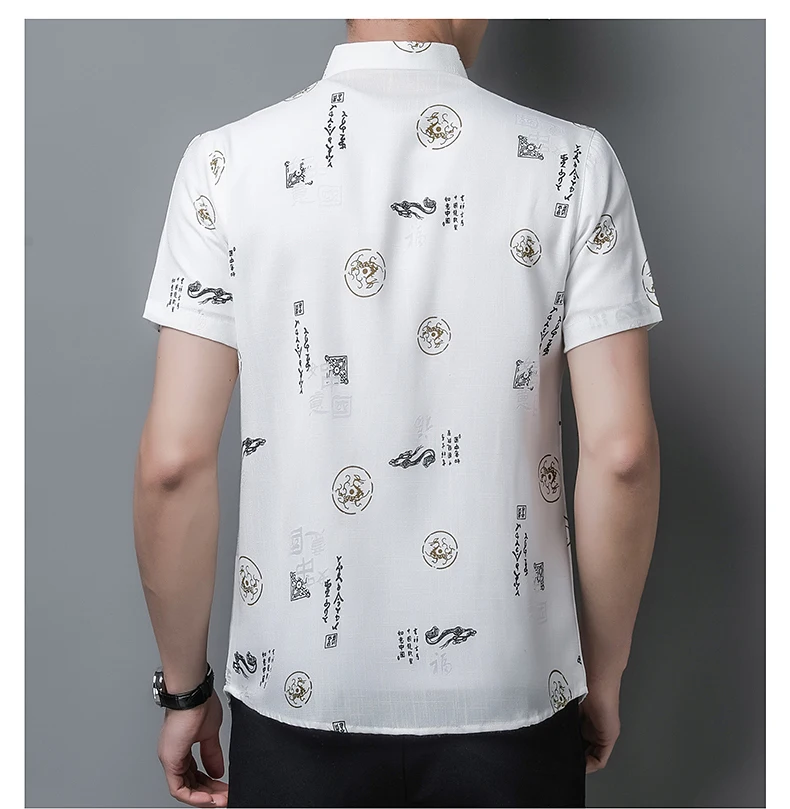 Рубашка мужская с китайским драконом, модная сорочка из хлопка и льна, Повседневная приталенная, с коротким рукавом, C775, на лето