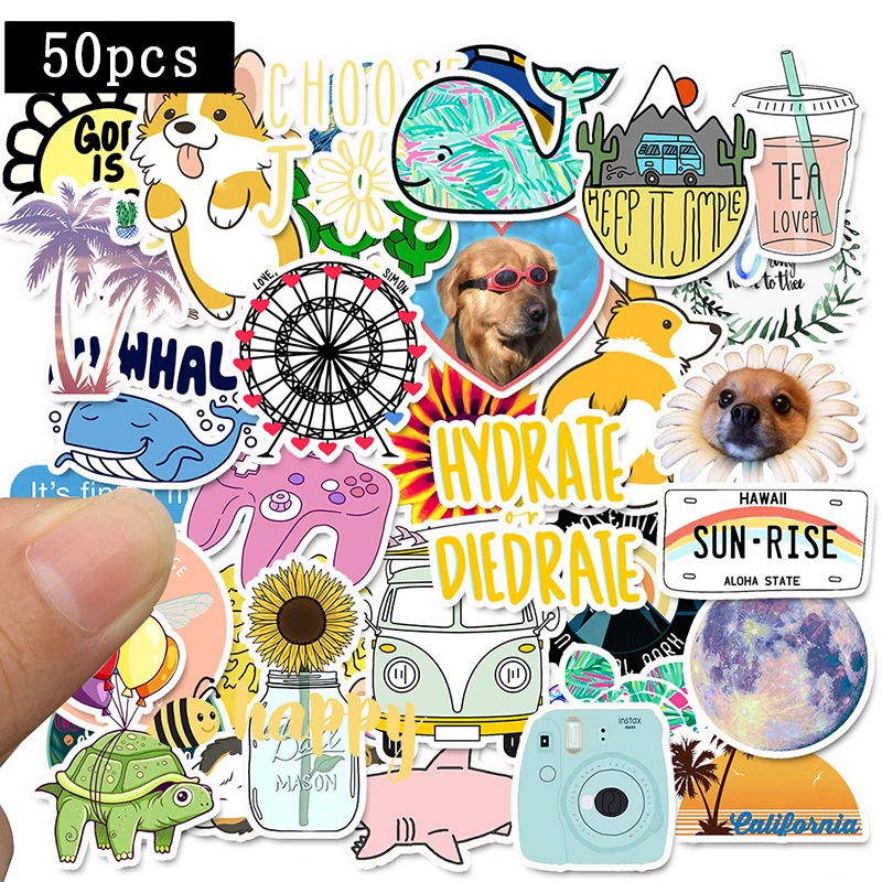 50 шт., Мультяшные простые наклейки VSCO для девочек, Kawaii, детские игрушки, водонепроницаемые наклейки, сделай сам, ноутбук, велосипедный шлем, автомобильные наклейки, игрушки
