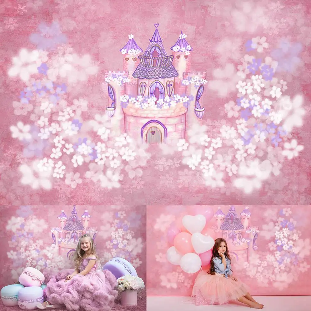 Фон для детских фотографий с изображением замка розового цвета для студийной фотосъемки принцессы на день рождения