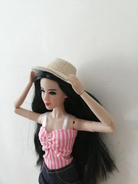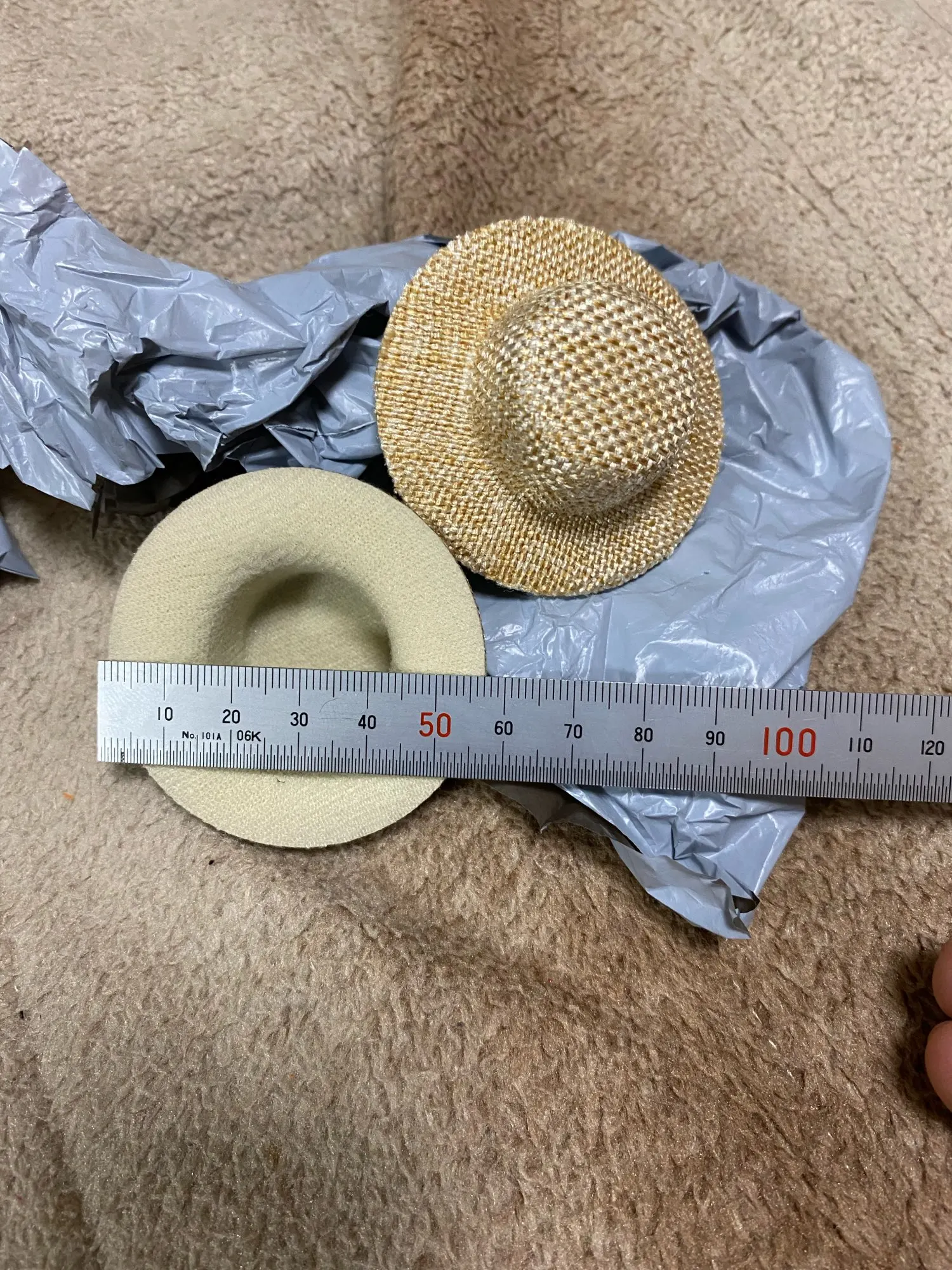 Шляпки симпатичные. Хорошо сделаны, аккуратно,ровно. Но моим куклам малы, к сожалению. Более-менее подошли лишь одной кукле. Барби пышке только если сверху на голову положить. Диаметр шляпы около 5,5см, внутренний диаметр 2,8-3см, глубина около 1,5 см. В сборной посылке шли 3 недели до Хабаровска. Трек отслеживался.