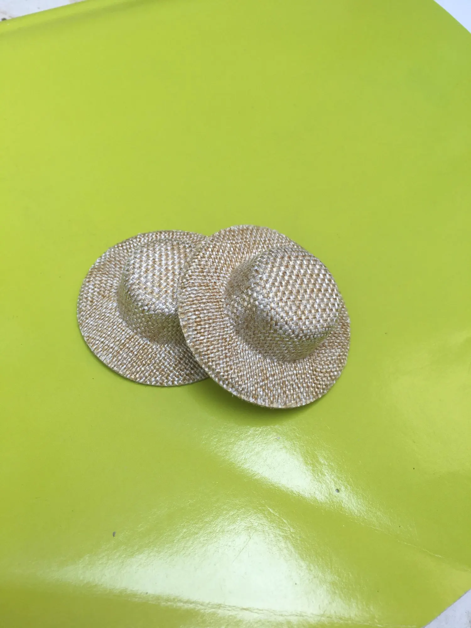Материал: пшеничная соломаРазмеры: 4,3 см/5,4 см/6,5 см/8CM9CM/10,2 см/11,3 смПосылка включает в себя:2 шт. * Мини соломенные шляпы