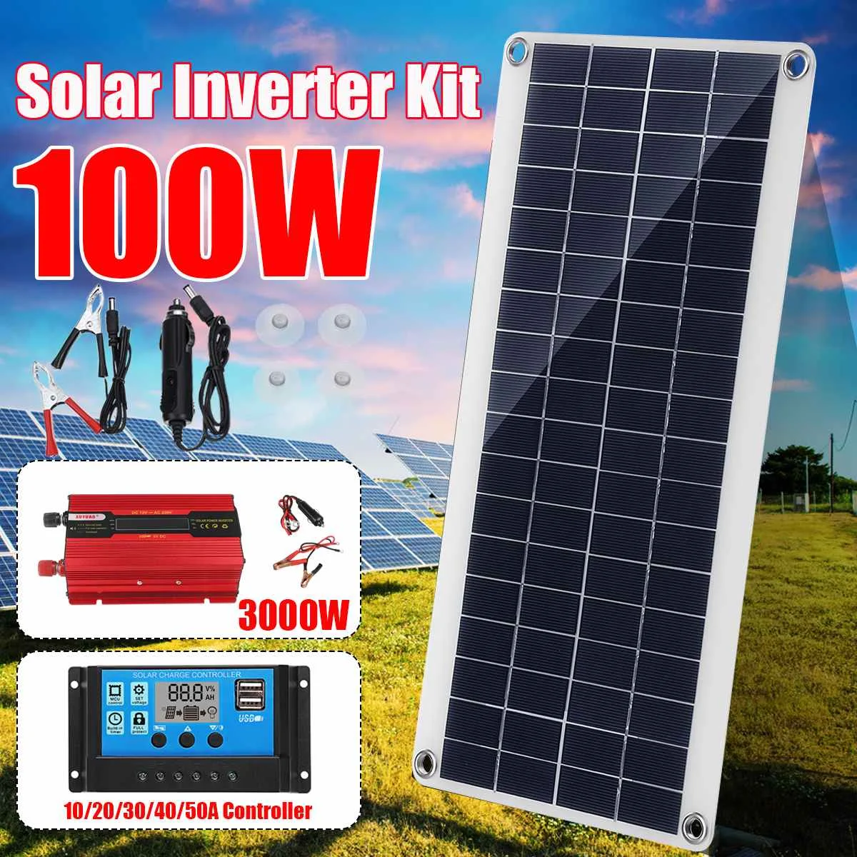 100 Вт солнечная энергетическая система 400 Вт Солнечная Панель зарядное устройство 220 В3000 Вт инверторный комплект полный контроллер домашняя сетка для кемпинга телефонная подушка
