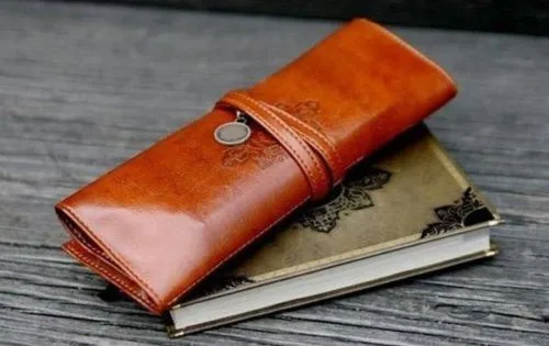 Чехол для карандашей Rollup из искусственной кожи, ретро-сумка для ...
