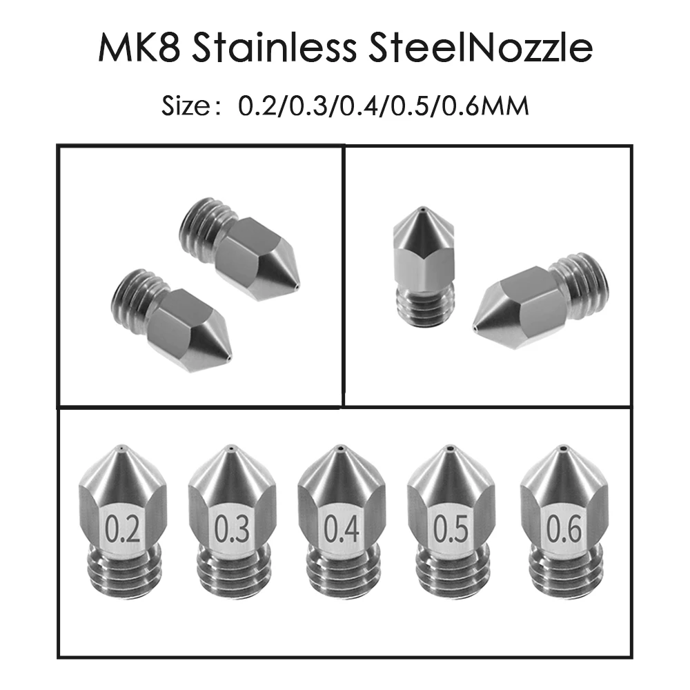 3D-принтеры резьбовой Нержавеющаясталь MK8 насадка M6 0,2 0,3 0,4 0,5 0,6 мм для 1,75 мм нити для CR10 CR-10S Эндер 3 Эндер 5