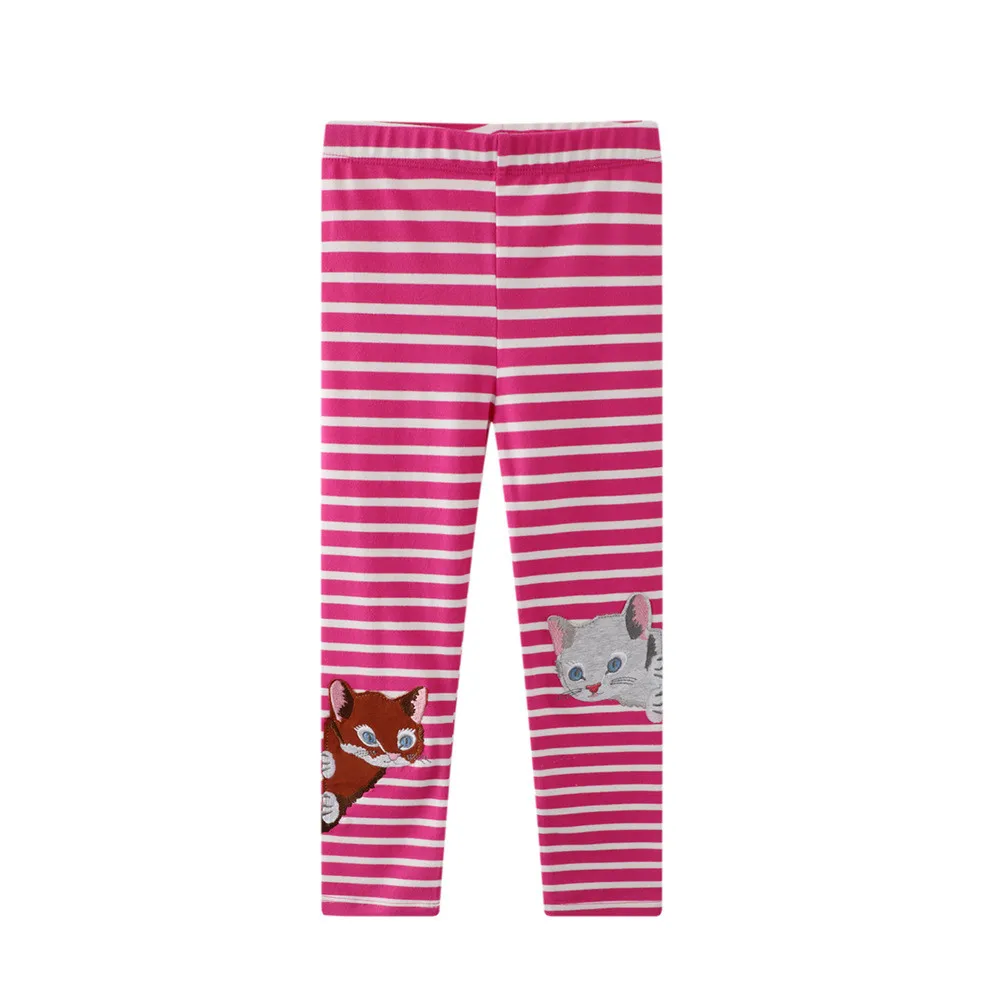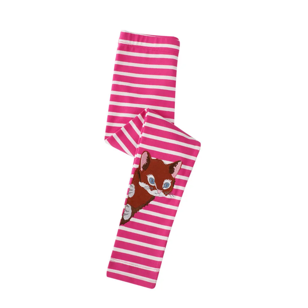 Прыжки метров пальто с капюшоном для девочек на весну-осень, леггинсы, штаны с изображением милых животных, аппликация Лидер продаж; Детские брюки; Узкие брюки; Одежда для детей