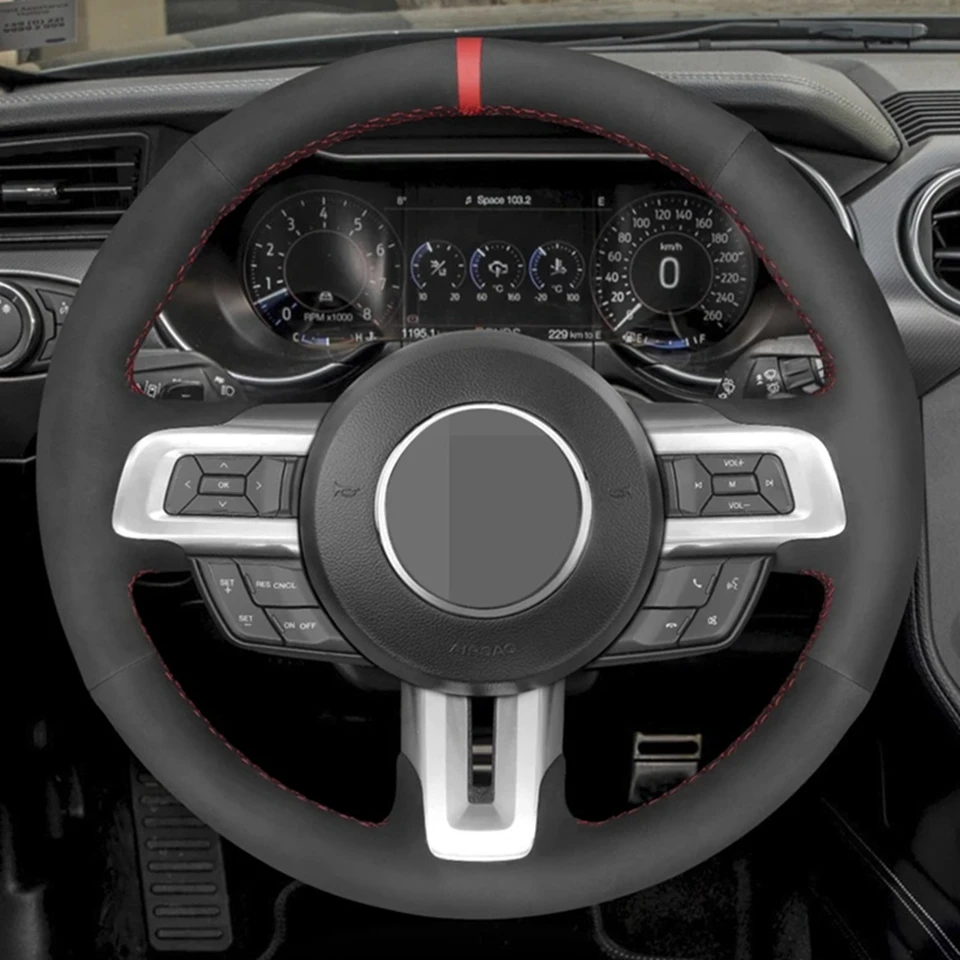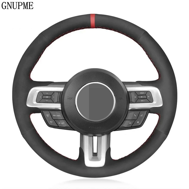 Сшитая вручную мягкая черная замша чехол рулевого колеса автомобиля для Ford Mustang 2015, 2017, 2018, 2019, Mustang GT 2015, 2017, 2018, 2019