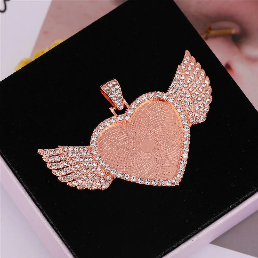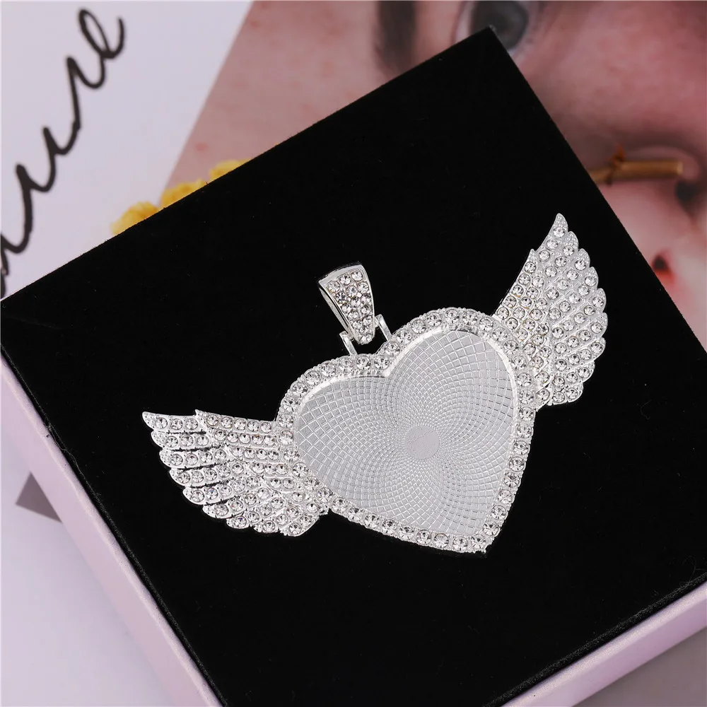 30 шт оптом сердце ожерелье основа Подвески Крылья Подвески Стразы ободок 30 мм Пустой Лоток для DIY ювелирных изделий Аксессуары Компоненты