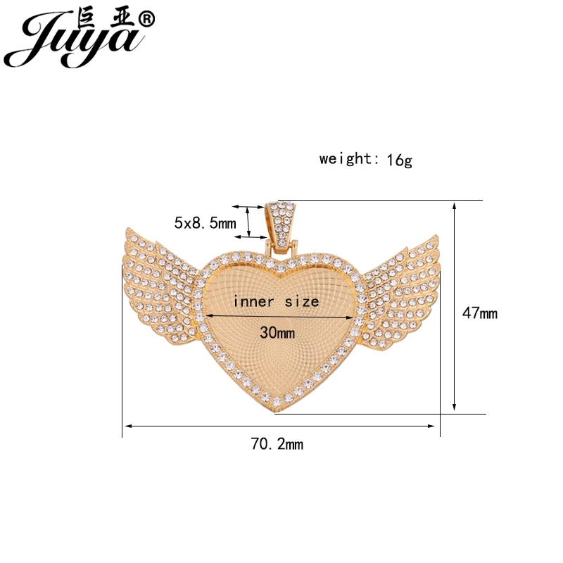 30 шт. оптовая продажа ожерелье в форме сердца подвеска основа Крылья Подвески горный хрусталь ободок 30 мм Пустой Лоток для DIY ювелирные аксессуары компоненты