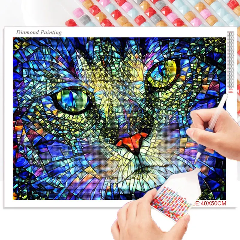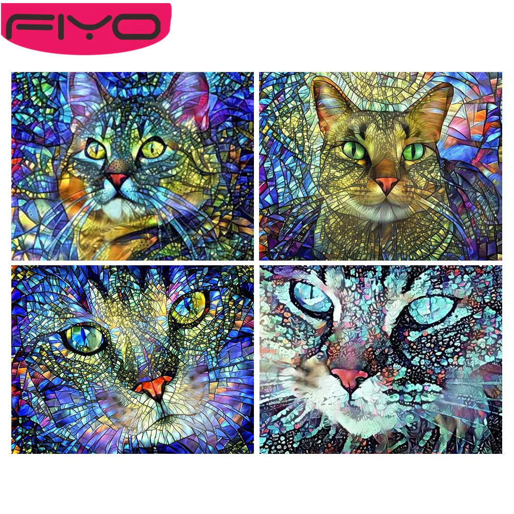 FIYO алмазная живопись кошачий глаз полный дрель квадратный подарок ручной работы Алмазная вышивка крестиком Бриллиантовая мозаичная фигурка животного настенное искусство