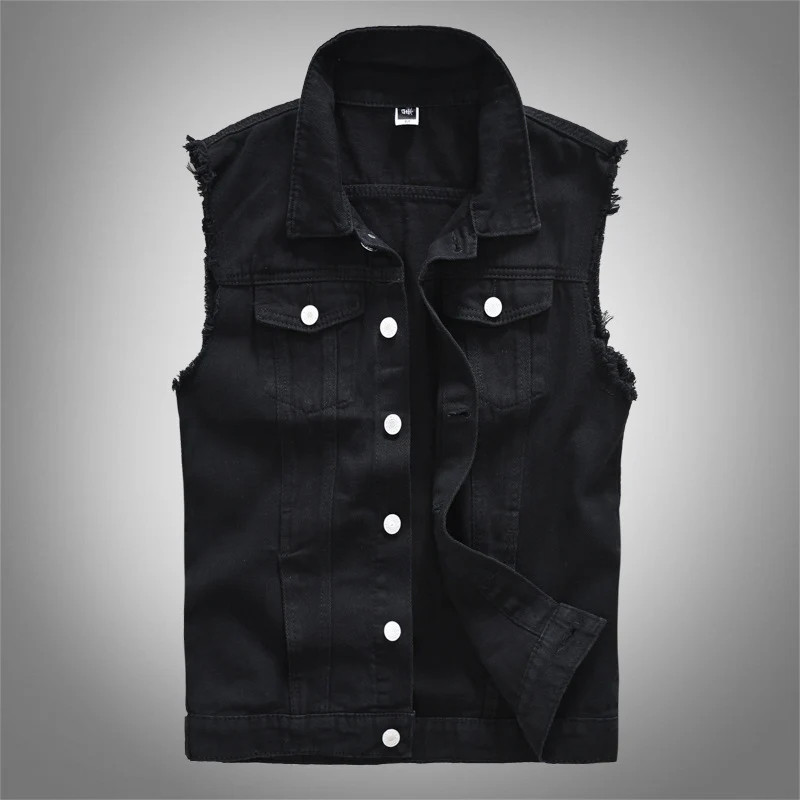 Мужской повседневный жилет, приталенный хлопковый джинсовый жилет, модель размера плюс в Корейском стиле, уличная одежда, куртки без рукавов в стиле панк, M-5XL