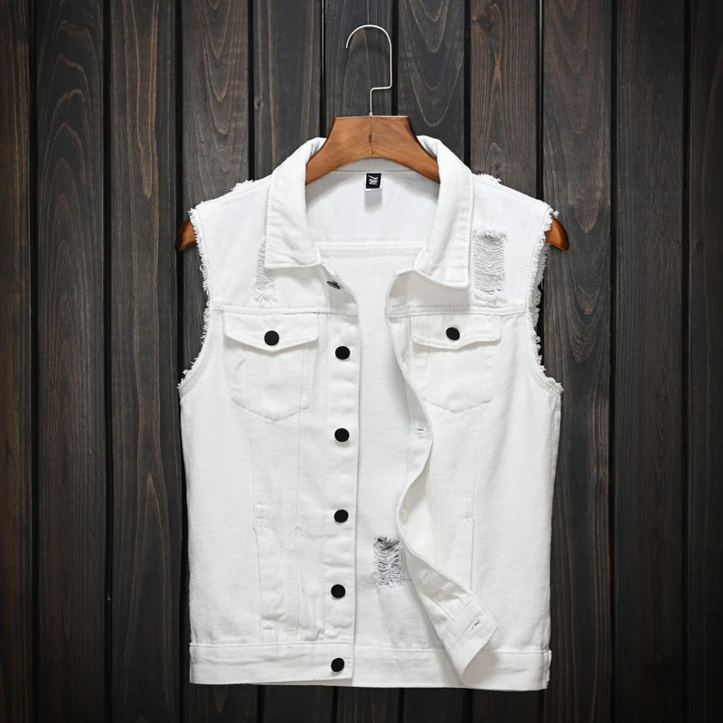 Жилет SHIFUREN мужской из денима, хлопковая рваная безрукавка, одно...