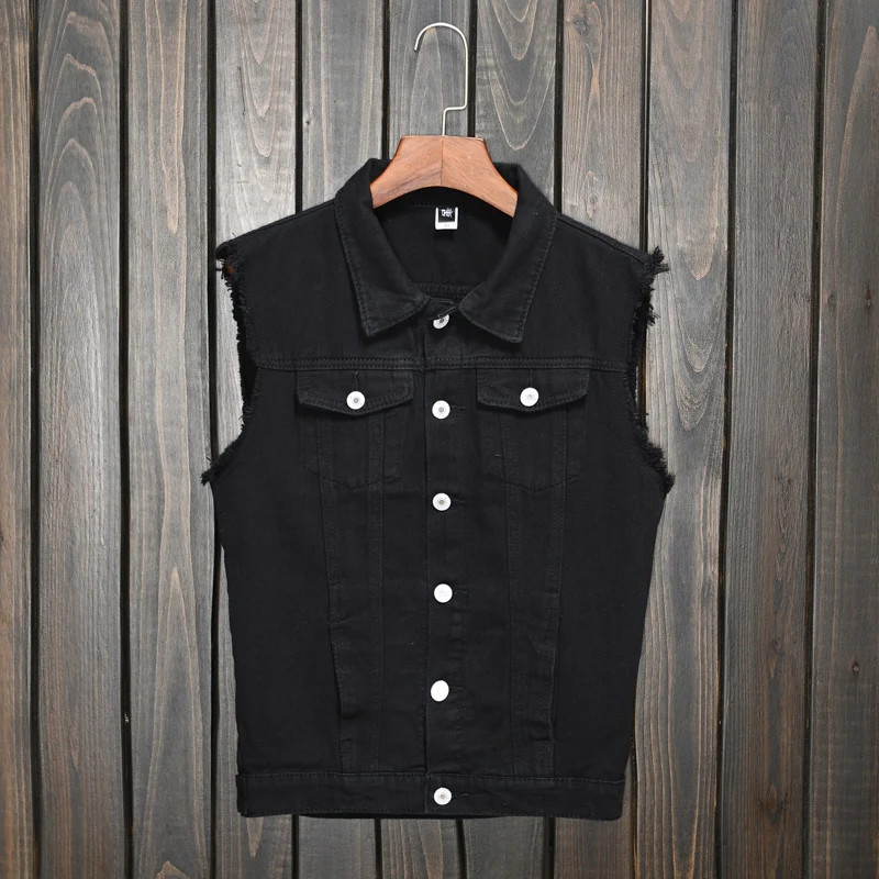 Мужской джинсовый жилет, повседневный черный жилет, в стиле хип-хоп...