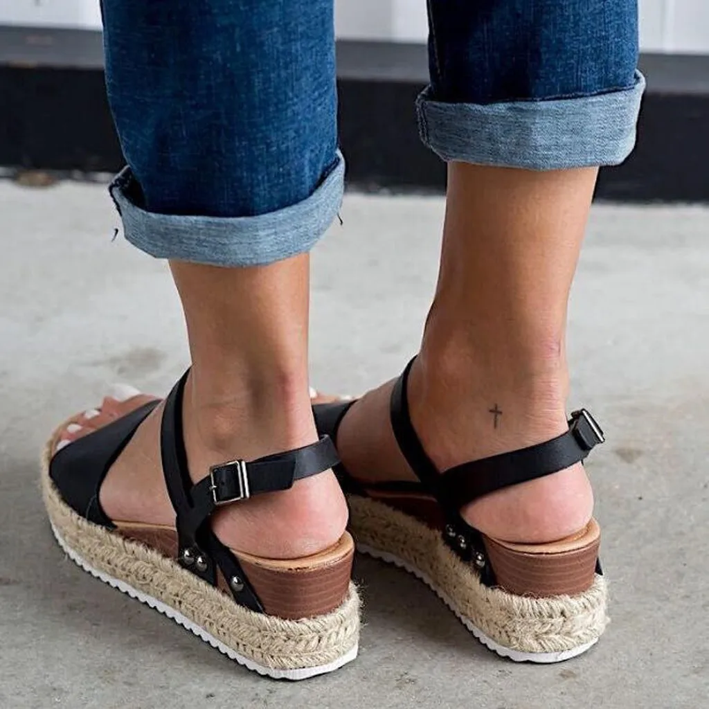 Сандалии женские на платформе, повседневные босоножки в стиле ретро, с открытым носком, ремешком и пряжкой, на плоской подошве, лето 2021