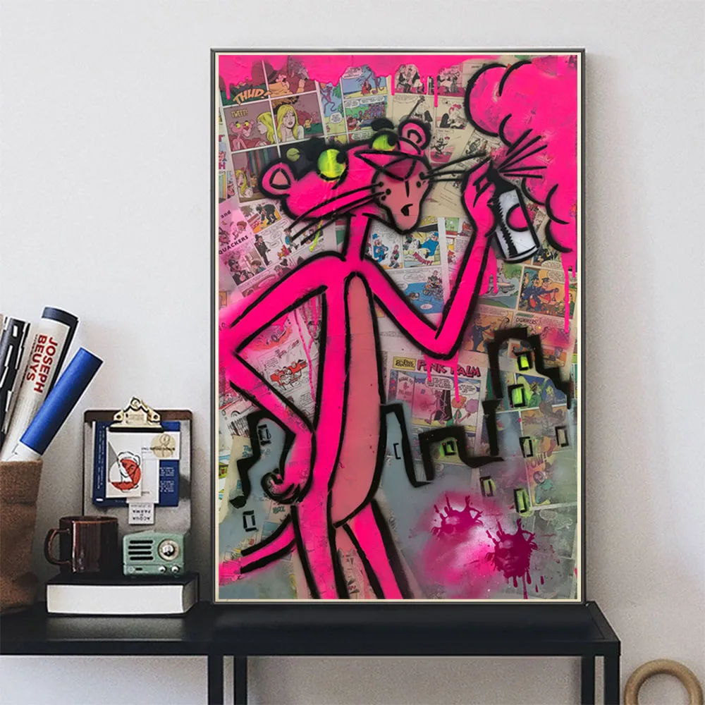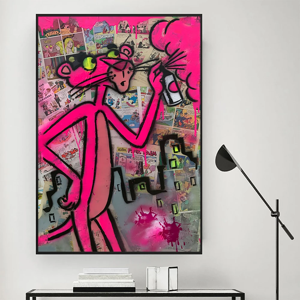 Поп мультфильм розовый леопард Картина на холсте постеры и принты граффити уличная Настенная картина для гостиной домашний декор
