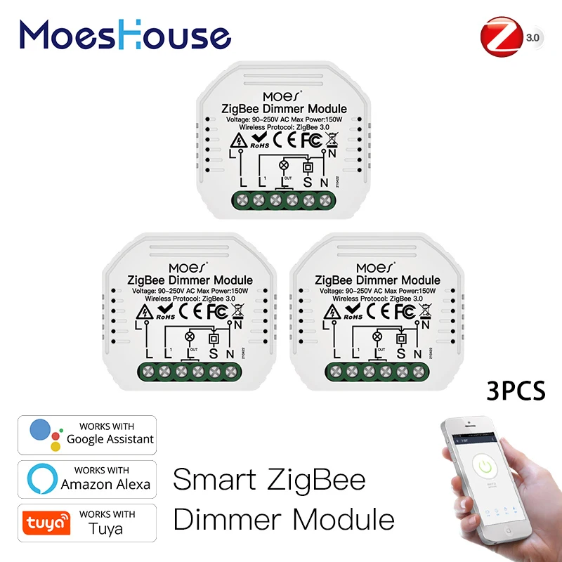 MoesHouse Mini DIY Tuya ZigBee 3,0 умный диммер релейный модуль Tuya ZigBee3.0 хаб требуется умная жизнь/приложение Tuya беспроводной пульт дистанционного управления, работает с Alexa Google Home Голосовое управление 1/2 способ 1 банда Изготовитель: MoesДом Основные характеристики: