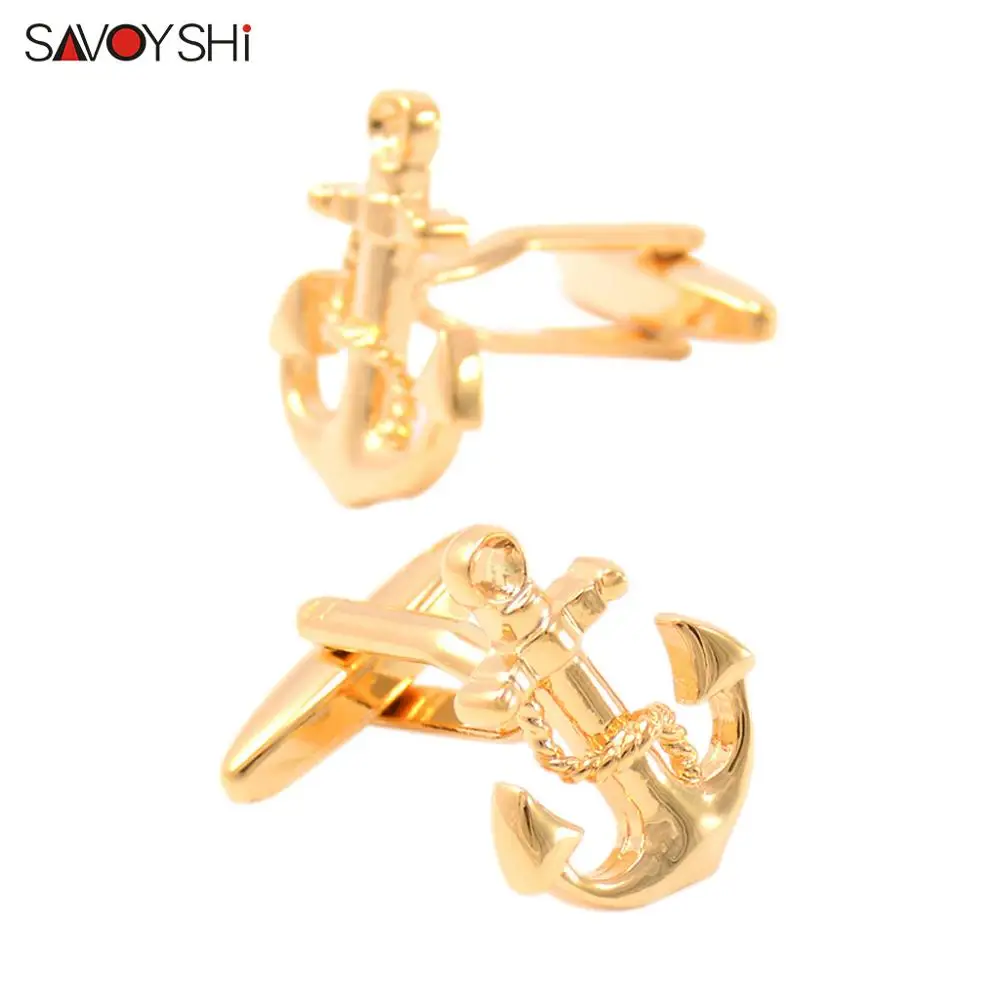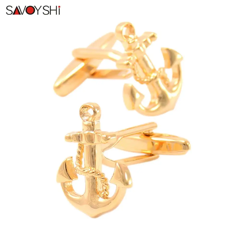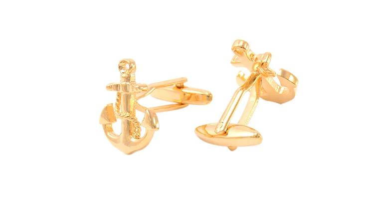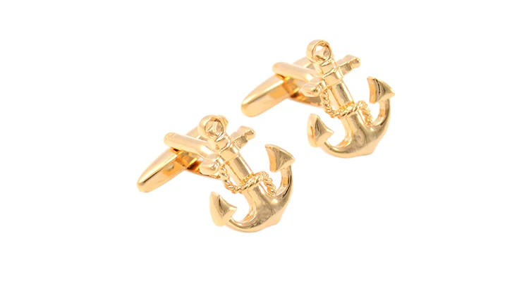 Запонки мужские, якорь золотистого цвета звеньев, с гравировкой имени, запонки для французских рубашек