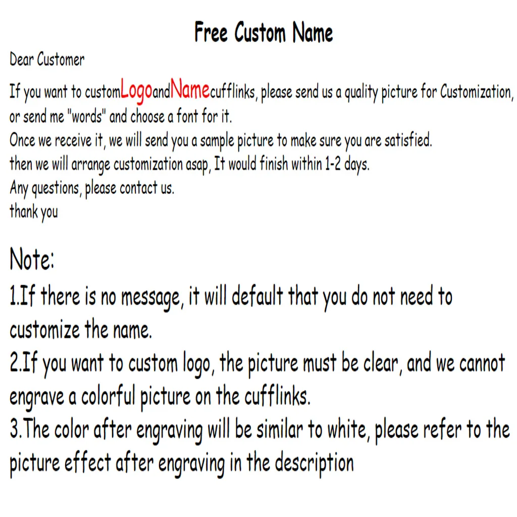 2. Если вам нужен индивидуальный логотип, изображение должно быть четким, и мы не сможем выгравировать красочную картинку на запонках.