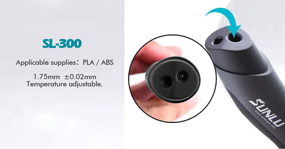 Название: SL-300Quantity: 1 * ручка, 1 * адаптер переменного тока, 1 * подставка ручки, 1 * Руководство пользователя, 2 * Зарядка через USB, 2 * палец capApplicable Материал: 1,75 мм PLA/ABSOptimum температуры: ABS 180-210 ℃ PLA 160-180 ℃цвет: черный и белый, черный и серый, черный и синий, черный и зеленый вход питания: DC5V 2A 10WPower вход адаптера: AC100-240V 50/60HZ 0,35 AWarranty: одногодичная гарантия