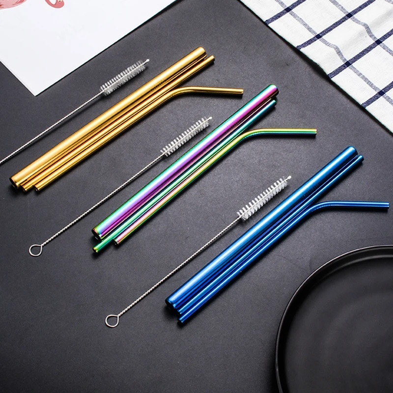 Многоразовые металлические соломинки, экологически чистые, нержавеющая сталь 304 набор соломинок, с щеточкой, для бара, коктейлей, соломинки для молочного коктейля, чая, молока