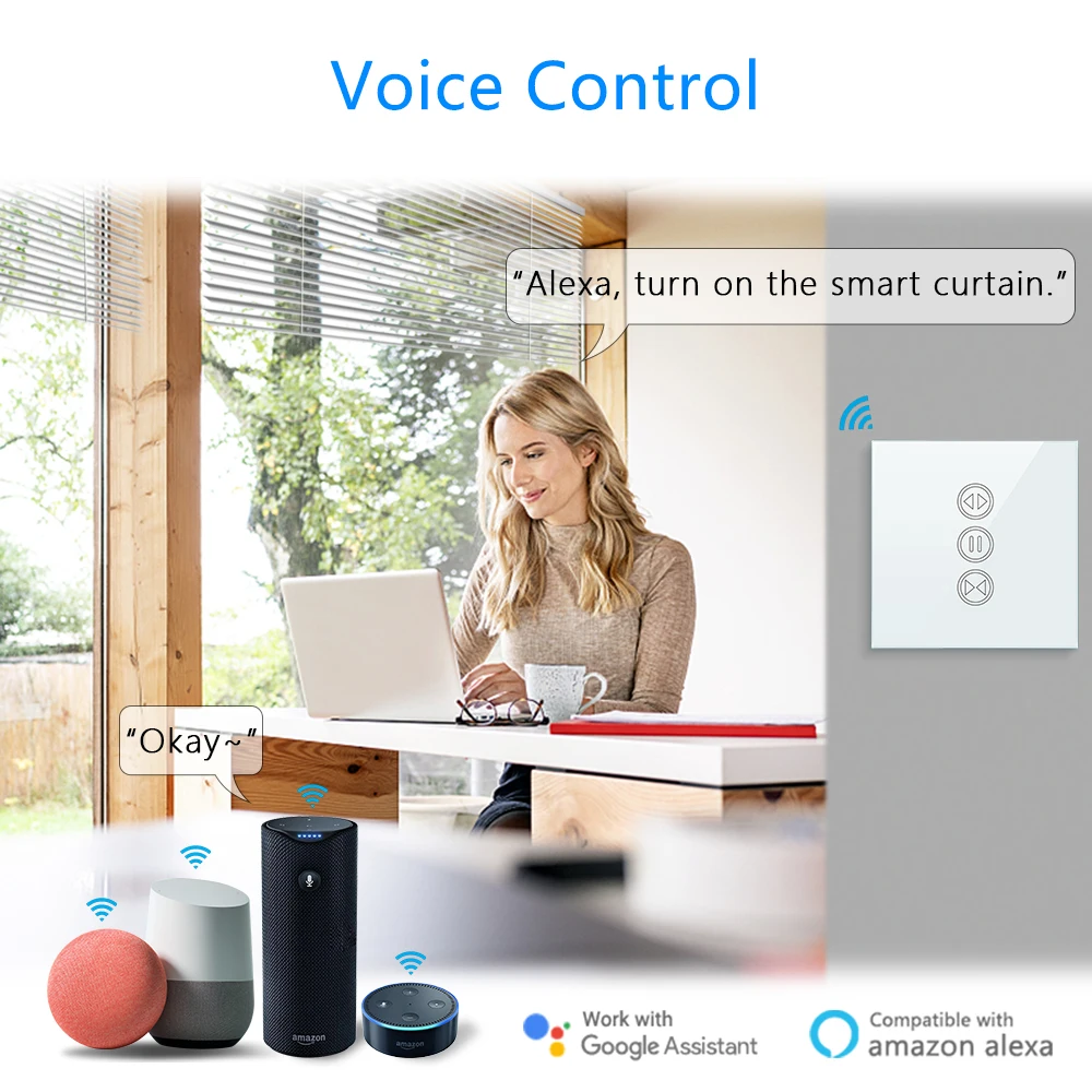 -Беспроводной умный слепой переключатель совместим с Amazon Alexa, Google Home.-С голосовым управлением, чтобы включить и выключить шторы.