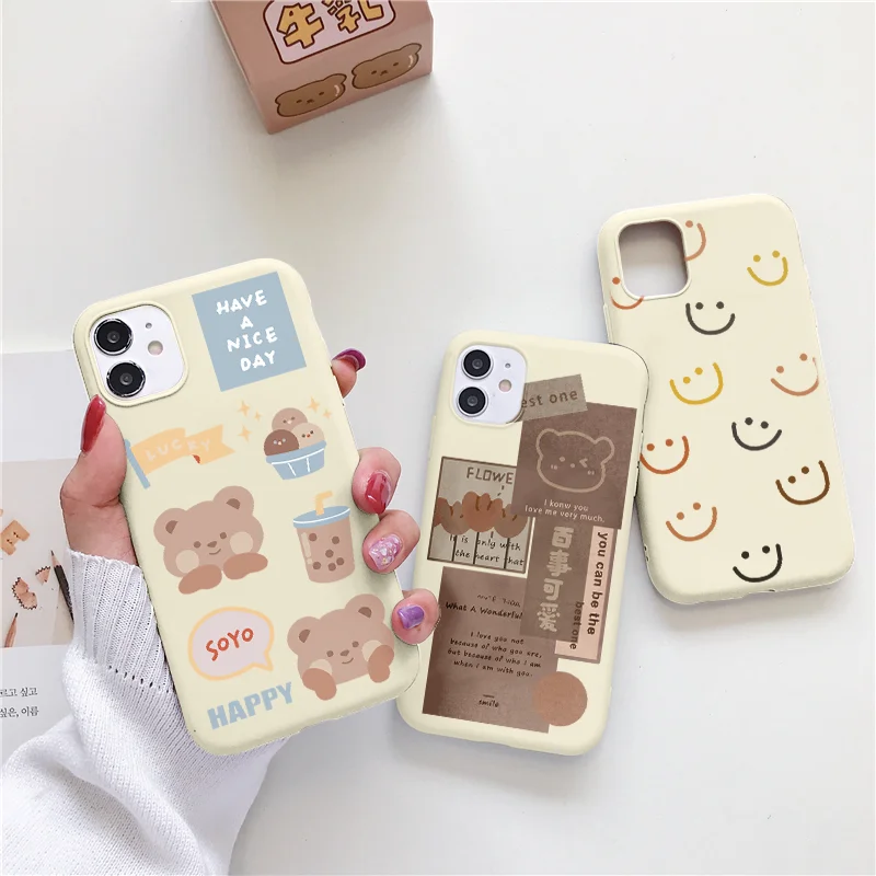 Роскошный чехол с цветами для iPhone 12 Mini 11 13 Pro Max X XR XS Max 7 8 6Plus SE 3 2022 2020, Мягкий бампер из ТПУ, матовая задняя крышка со смайликом