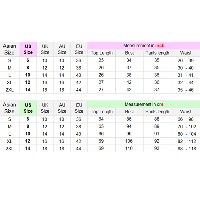 Материал: полиэстер Тип узора: однотонный воротник: v-образный вырез Длина рукава: короткий рукав Основной цвет: как на картинке Стиль: Модный Размер: S, M, L, XL, 2XL Таблица размеров: Размер: S бюст: 88 см/34,65 дюйма Длина топа: 69 см/27,17 дюйма талия: 78 см/30,71 дюйма Длина брюк: 90 см/35,43 дюйма Размер: M Бюст: 94 см/37,01 дюйма Длина топа: 70 см/27,56 дюйма талия: 84 см/33,07 дюйма Длина брюк: 92 см/36,22 дюйма Размер: L Бюст: 100 см/39,37 дюйма Длина топа: 71 см/27,95 дюйма талия: 90 см/35,43 дюйма Длина брюк: 94 см/37,01 дюйма Размер: XL Бюст: 106 см/41,73 дюйма Длина топа: 72 см/28,35 дюйма Талия: 96 см/37,80 дюйма Длина брюк: 96 см/37,80 дюйма Размер: XXL Бюст: 112 см/44,09 дюйма Длина топа: 73 см/28,74 дюйма Талия: 102 см/40,2 дюйма Длина брюк: 98 см/38,58 дюйма комплектация: 1 Топ + 1 штаны характеристики: Стильный и модный дизайн делает вас более привлекательной, он сделан из высококачественных материалов, мягкий на ощупь, никакого вреда для вашей кожи, пожалуйста, допускайте небольшую погрешность в 1-3 см из-за ручного измерения и небольшие различия в цвете из-за различных настроек дисплея, спасибо за понимание! 1 дюйм = 2,54 см