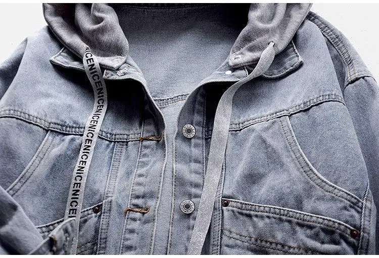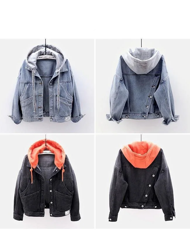 Куртка женская джинсовая со съемным капюшоном, Короткая свободная в...