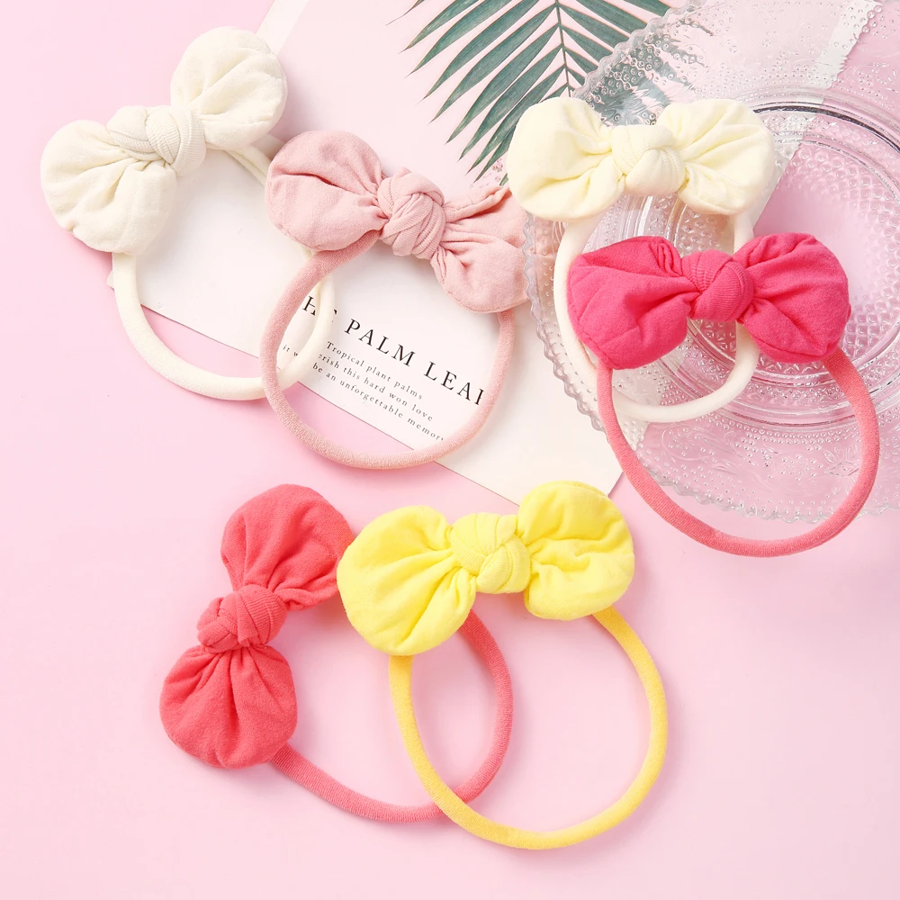 Нейлоновые повязки на голову с бантом для маленьких девочек, 34 Цвета, милые повязки для волос с ушками в виде мышки для девочек, тюрбан, детские головные уборы, аксессуары для волос