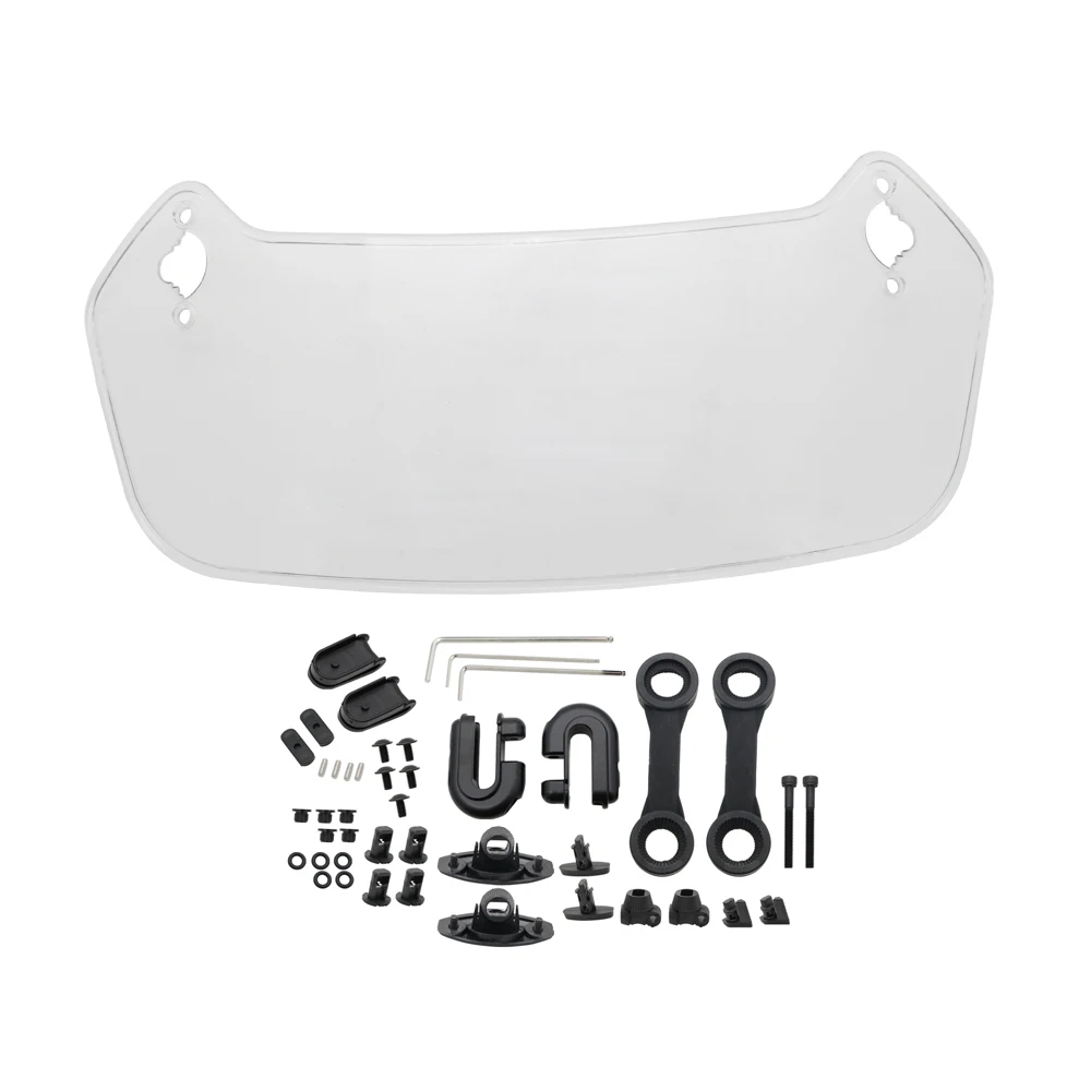 Экран оснащен удлинителями и двойными шарнирами, что обеспечивает большой диапазон движения и регулировку-дает в общей сложности вверх/вниз по вертикали до + или-110 мм, при одинаковой регулировке угла наклона спойлера независимо от высоты спойлера.Профессиональное модифицированное акриловое прозрачное ветровое стекло обеспечивает красивый внешний вид и обеспечивает отличную защиту от ветра.Регулируемое ветровое стекло, фиксируемое сверху оригинального ветрового стекла, подходит практически для любого велосипеда с ветровым стеклом.Защита от ветра может быть значительно лучше, а шум при быстром вождении может быть минимизирован. Более комфортные и расслабленные путешествия даже при быстрой растяжке!Если вы едете по бездорожью, спойлер можно очень просто снять через складной механизм, а прокладка из мягкой резины не принесет неудобств или риск повреждений на участкеПолностью регулируемый угол для легкой установки без доработок