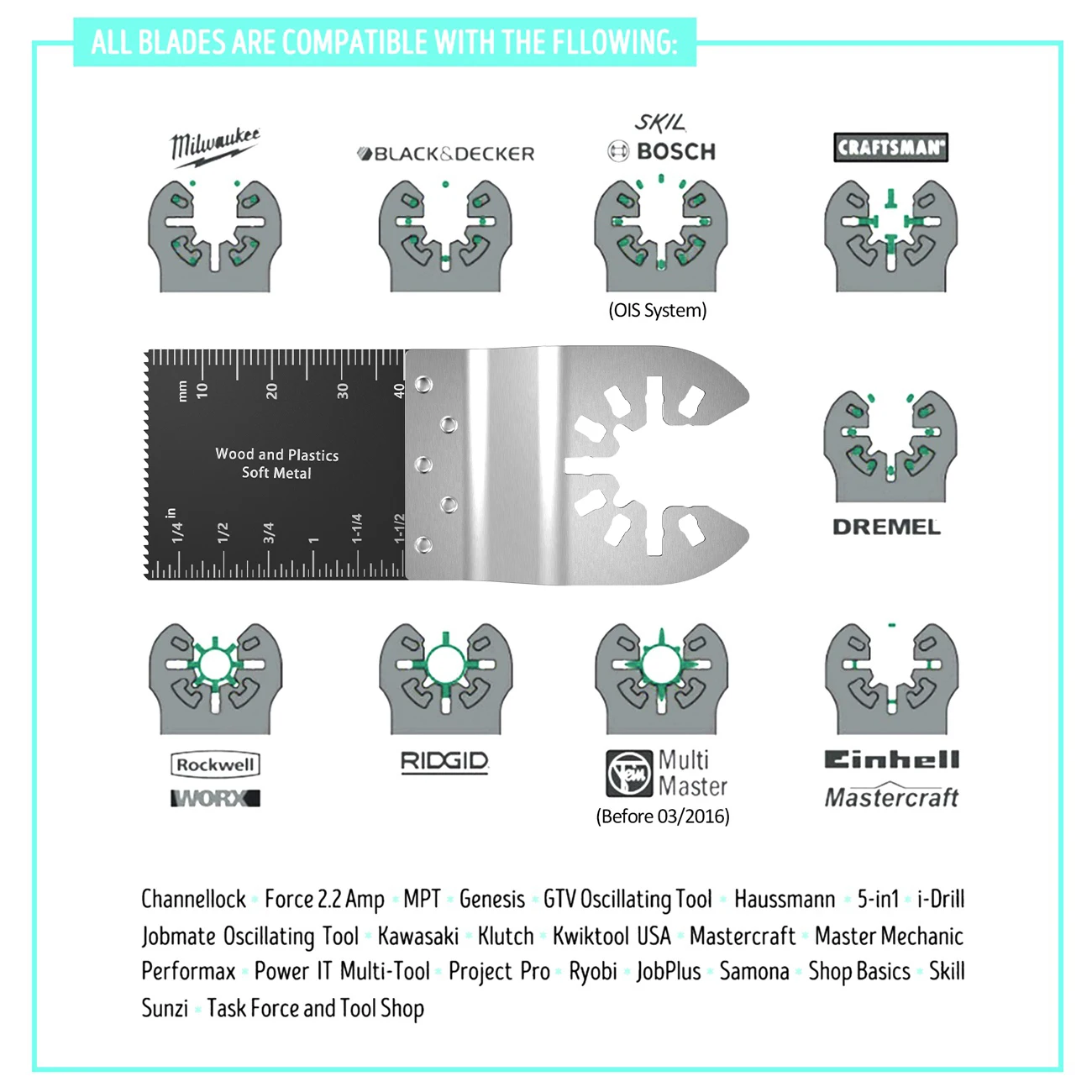 Колеблющееся многофункциональное лезвие изготовлено из быстрорежущей и высокоуглеродистой стали. Толстый металл и уникальный производственный процесс обеспечивают отличное качество. Зубцы лезвия нелегко сломать и прочнее.