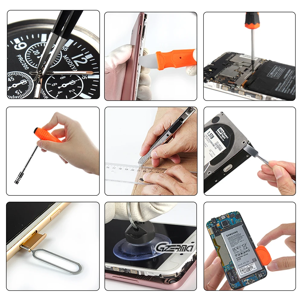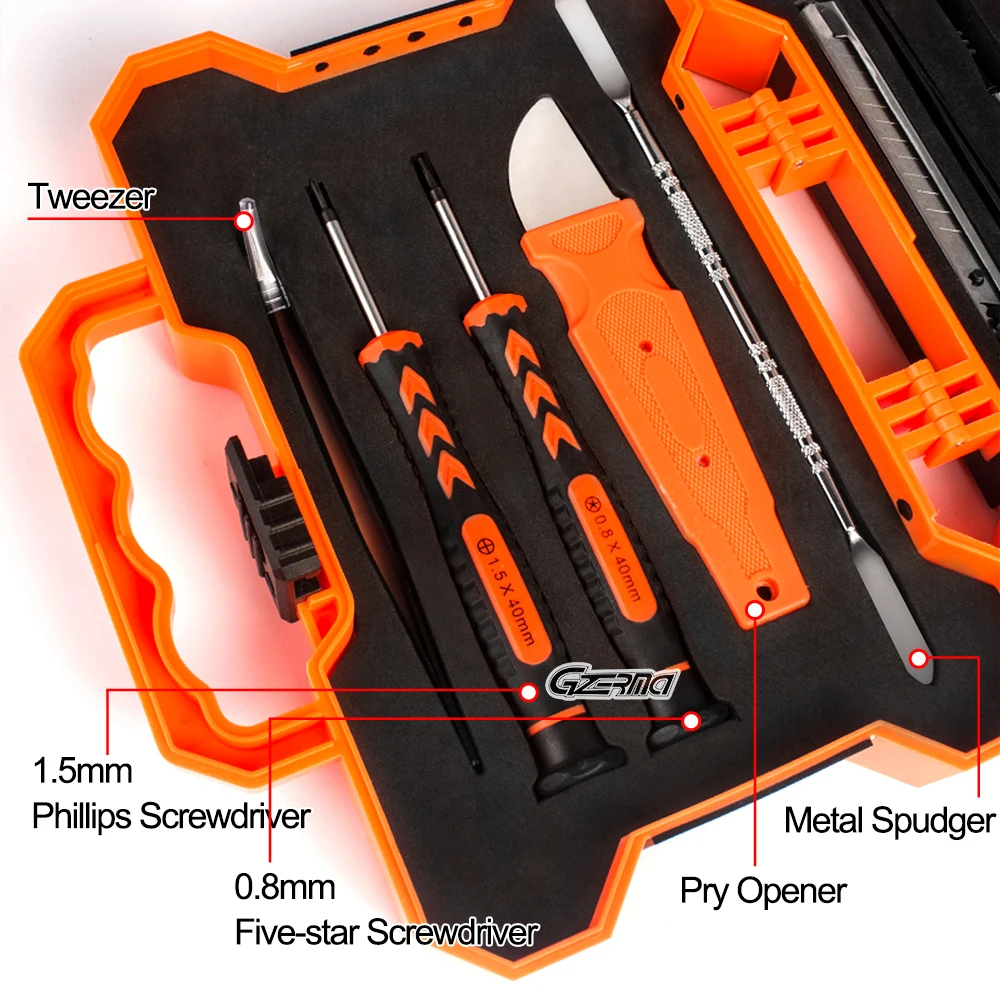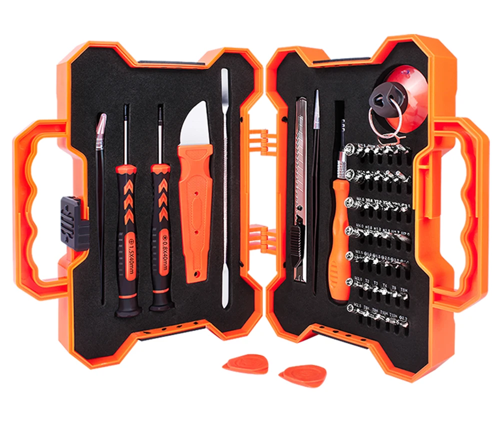 (42 шт. отвертка Биты + 13 инструментов для ремонта открывания)● 42 отвертки:-Шестигранная розетка: M2.5 ,M3.0 ,M3.5 ,M4.0 ,M4.5 , M5.0 ,M5.5-Phillips :PH000 ,PH00 ,PH0 ,PH1 ,PH2-Шестигранник: H0.9 ,H1.5 ,H2.0 ,H2.5 ,H3.0-Y-тип: Y0.6 ,Y2.0 ,Y2.5 ,Y3.0-Слот для sim-карты Pin-код: 0,8 мм-Pentalobe (Пять звезд): 0,8 мм, 1,2 мм, 1,5 мм-Гаечный ключ (U тип) :U1.7 ,U2.0-Прорези: 1,0, 1,5, 2,0, 3,0, 4,0 мм-Torx :T2 ,T3 ,T4 ,T5-Торкс с отверстием: T6H ,T7H , T8H,T9H ,T10H ,T15H-Противостояние бит для iPhone: 2,2 мм● 13 инструментов для открытия:1 * ручка2 * антистатические пинцеты1 * Универсальный нож1 * металлический пруток1 * открытие лезвия2 * отвертка (Pentalobe 0,8 мм, Phillips 1,5 мм)1 * Присоска1 * Разъем для извлечения sim-карты2 * треугольные вырезы1 * портативная коробка